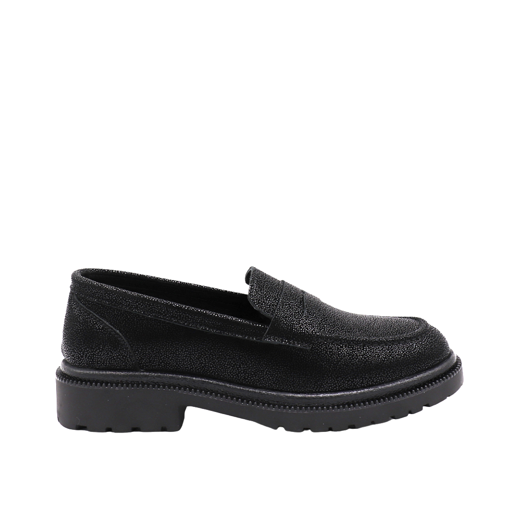 Défiez votre style avec les loafers noir brillant EVIE. Fabriqués en cuir noir de qualité, ces chaussures offrent confort et élégance. Leur design unique en fait l'accessoire parfait pour prendre des risques et affronter chaque journée avec audace et confiance.
