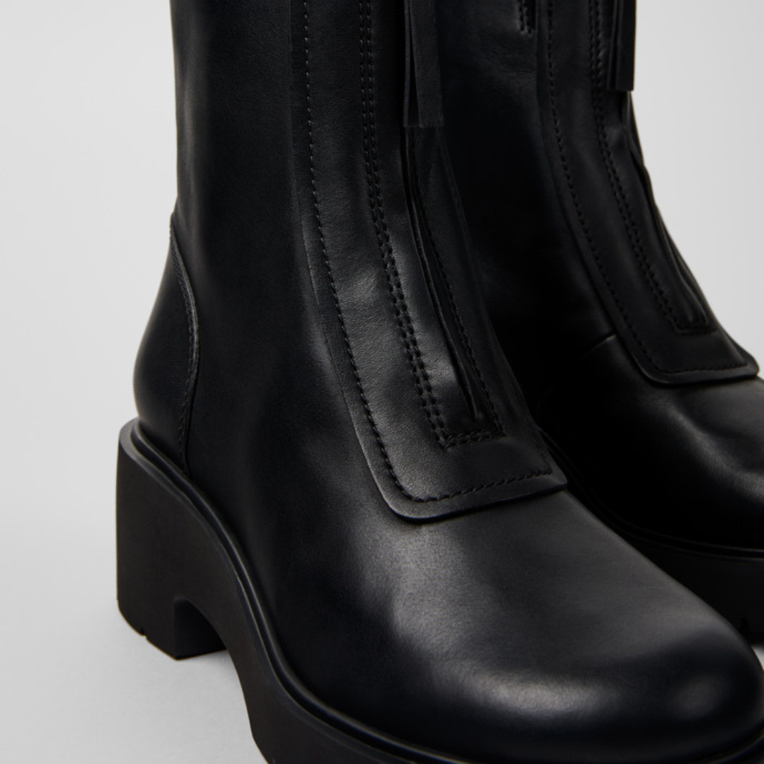 Alliant confort et style urbain, la botte Milah séduit par son design épais et distinctif, parfait pour l’hiver. Conçue en cuir de vachette noir avec des détails textiles, elle assure à la fois robustesse et élégance. Sa semelle intérieure OrthoLite® Recycled™ offre un confort respirant et durable, tandis que sa semelle extérieure en EVA apporte légèreté et adhérence. Avec son talon de 5,4 cm, Milah combine allure moderne et praticité pour vos journées en ville comme vos soirées d’hiver.