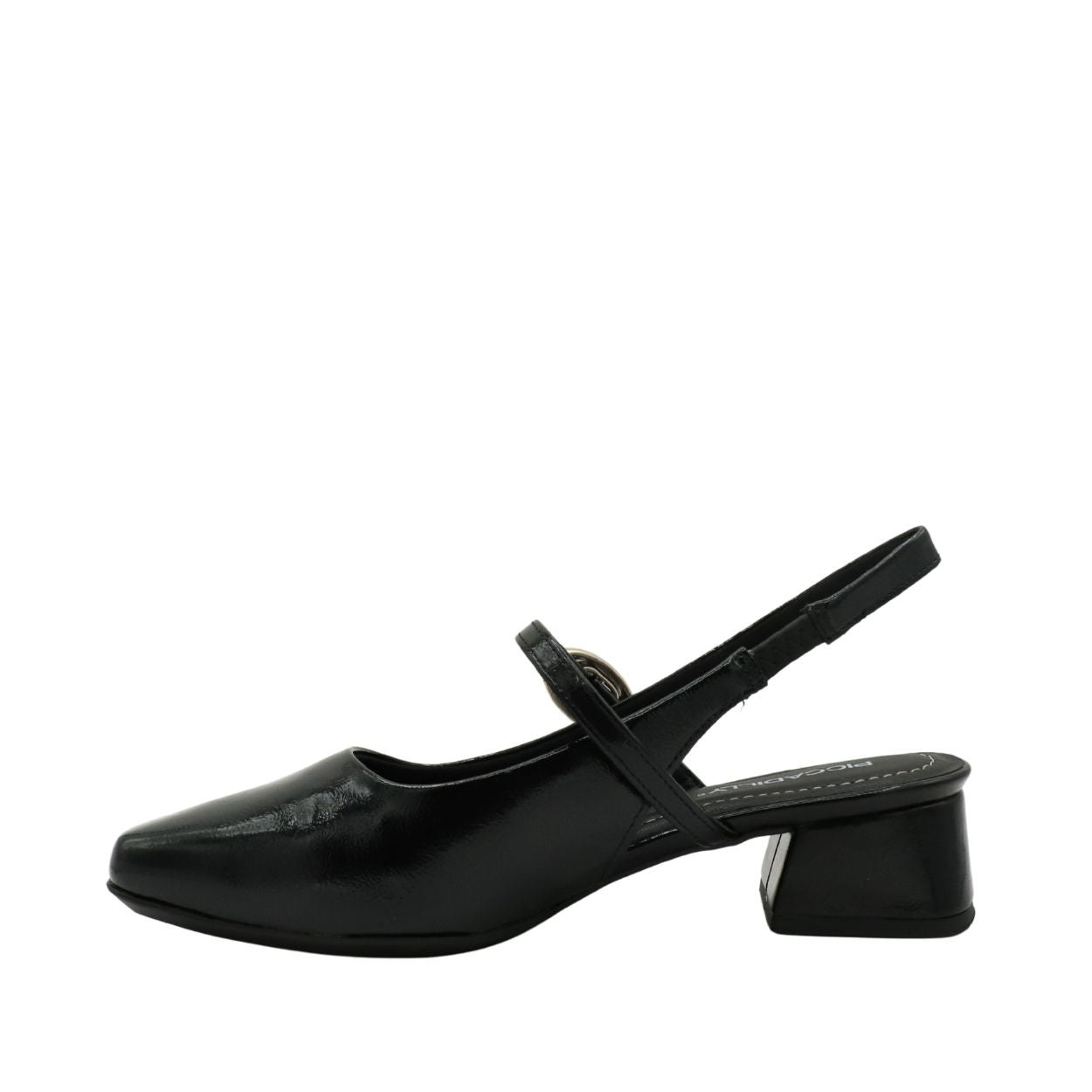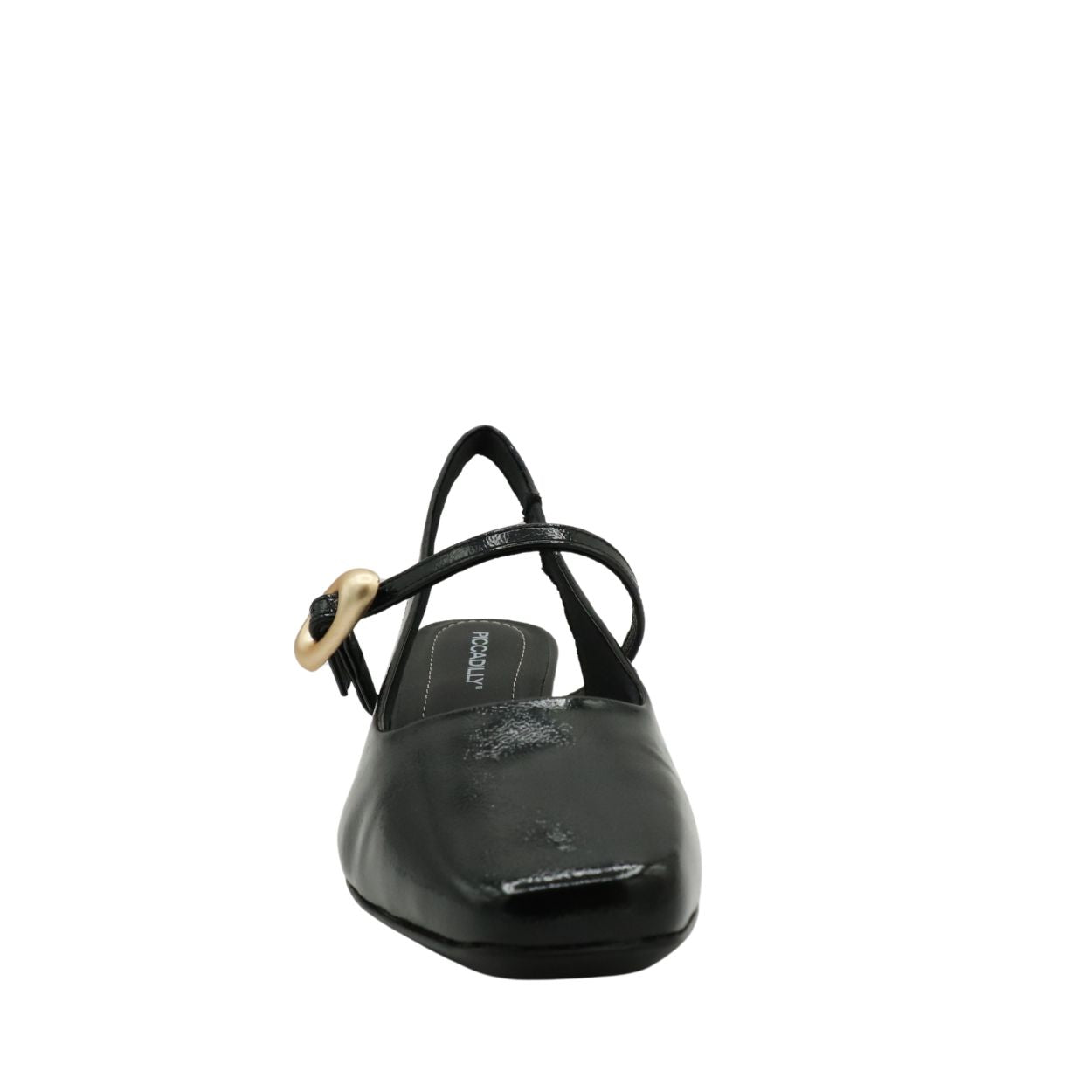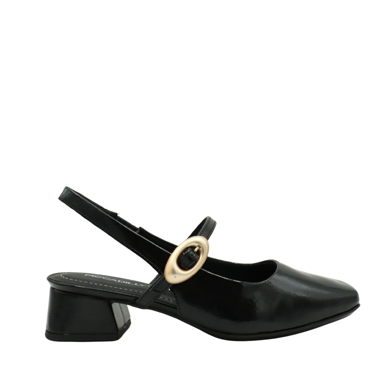 Apportez une touche de raffinement à vos tenues avec le PICCADILLY L1-160104A, un slingback élégant qui se distingue par son fini verni brillant et sa boucle décorative moderne.