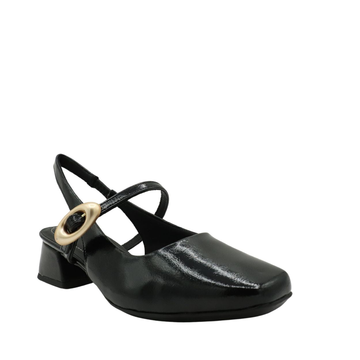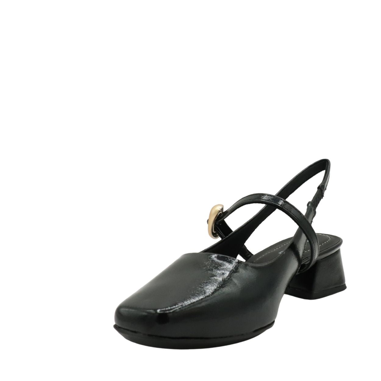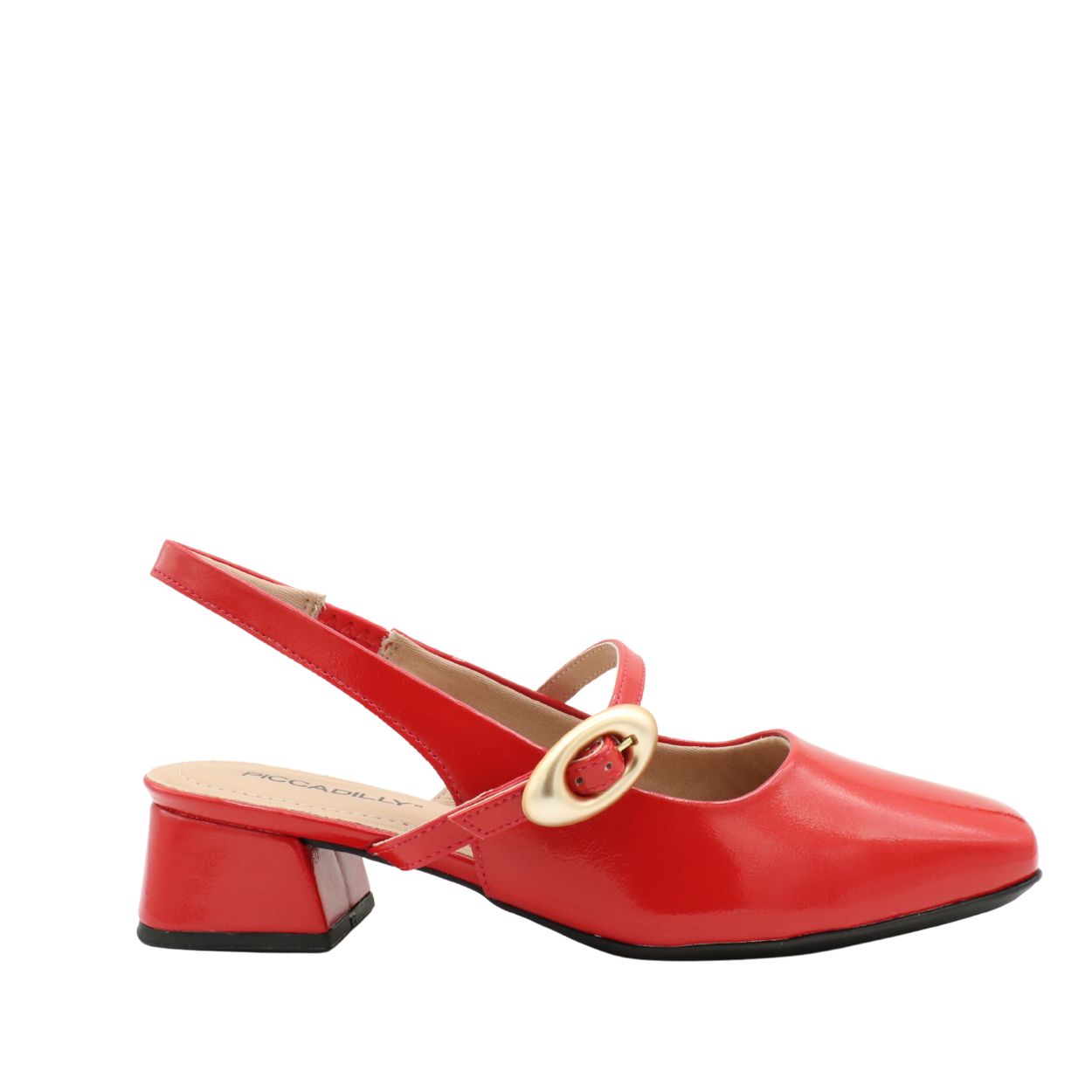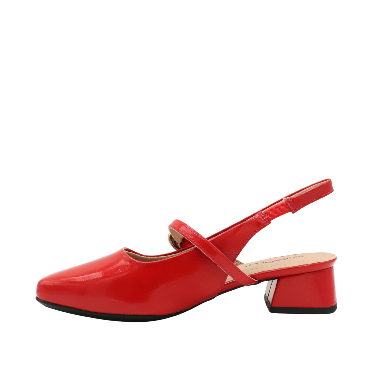 Apportez une touche de raffinement à vos tenues avec le PICCADILLY L1-160104A, un slingback élégant qui se distingue par son fini verni brillant et sa boucle décorative moderne.