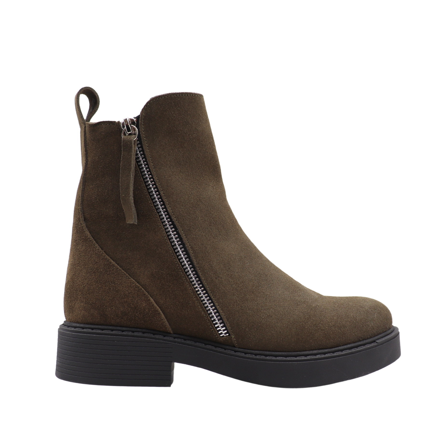 Avec leur ligne épurée et leur allure moderne, les bottines Claudia de Apropo sont un essentiel de la garde-robe automne-hiver. Confectionnées en suède haut de gamme, elles se distinguent par leur texture élégante et leur silhouette intemporelle. La fermeture éclair apparente ajoute une touche de caractère et garantit un enfilage rapide et pratique.