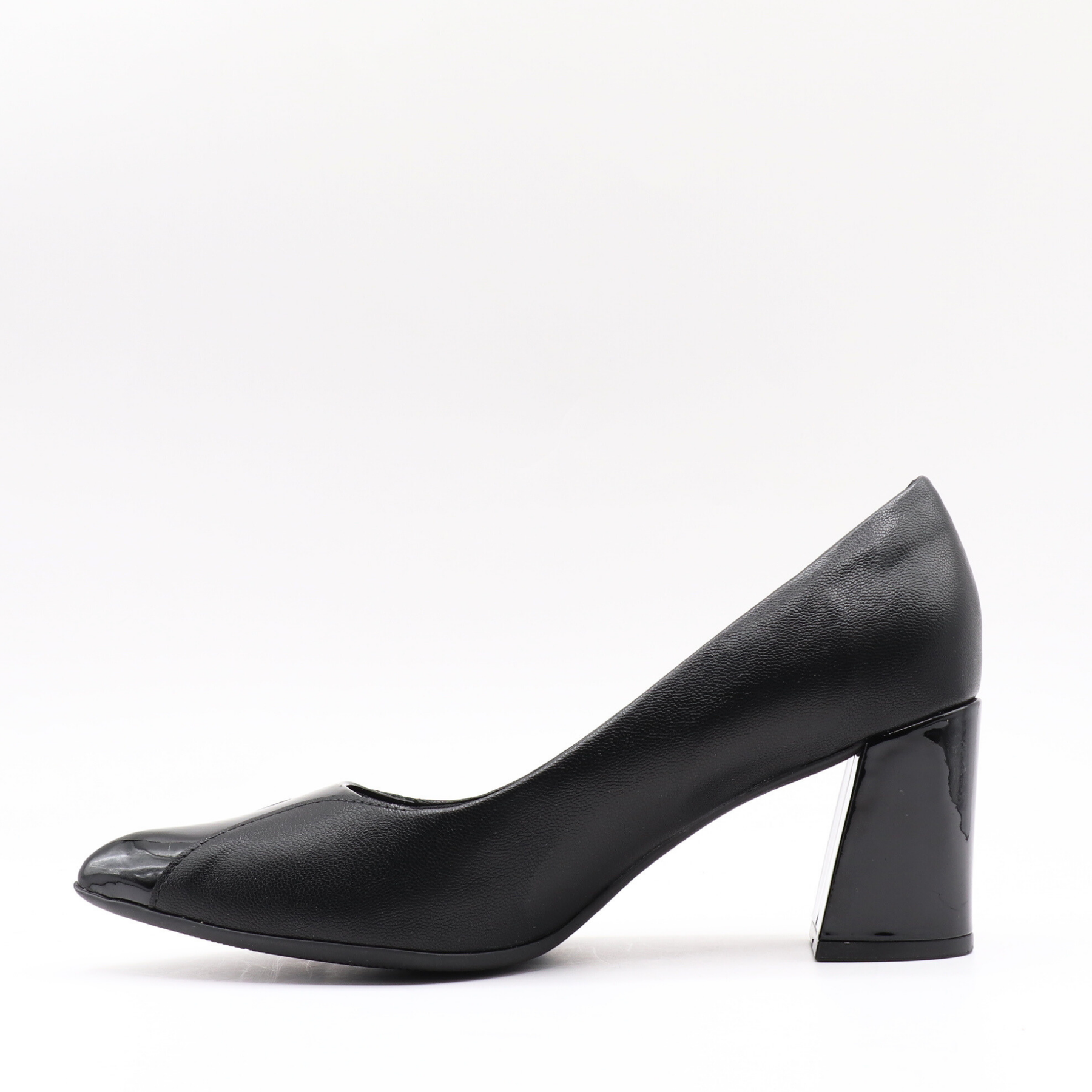 Cet escarpin noir Piccadilly séduit par son bout verni contrastant qui apporte une touche sophistiquée à son design classique. Son talon bloc élargi assure une excellente stabilité et un confort prolongé, idéal pour accompagner vos journées actives au bureau comme vos soirées élégantes.