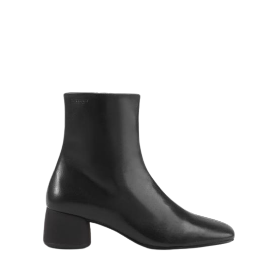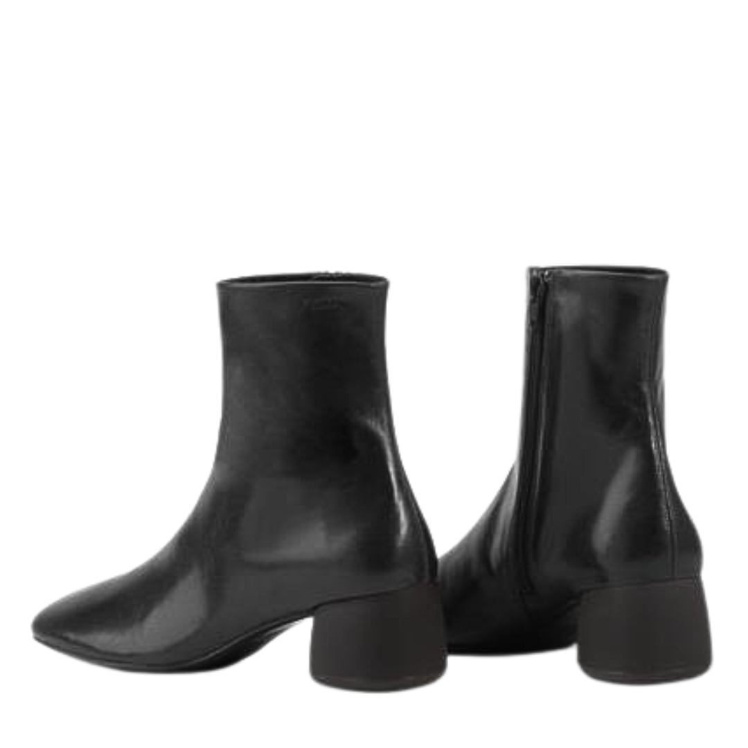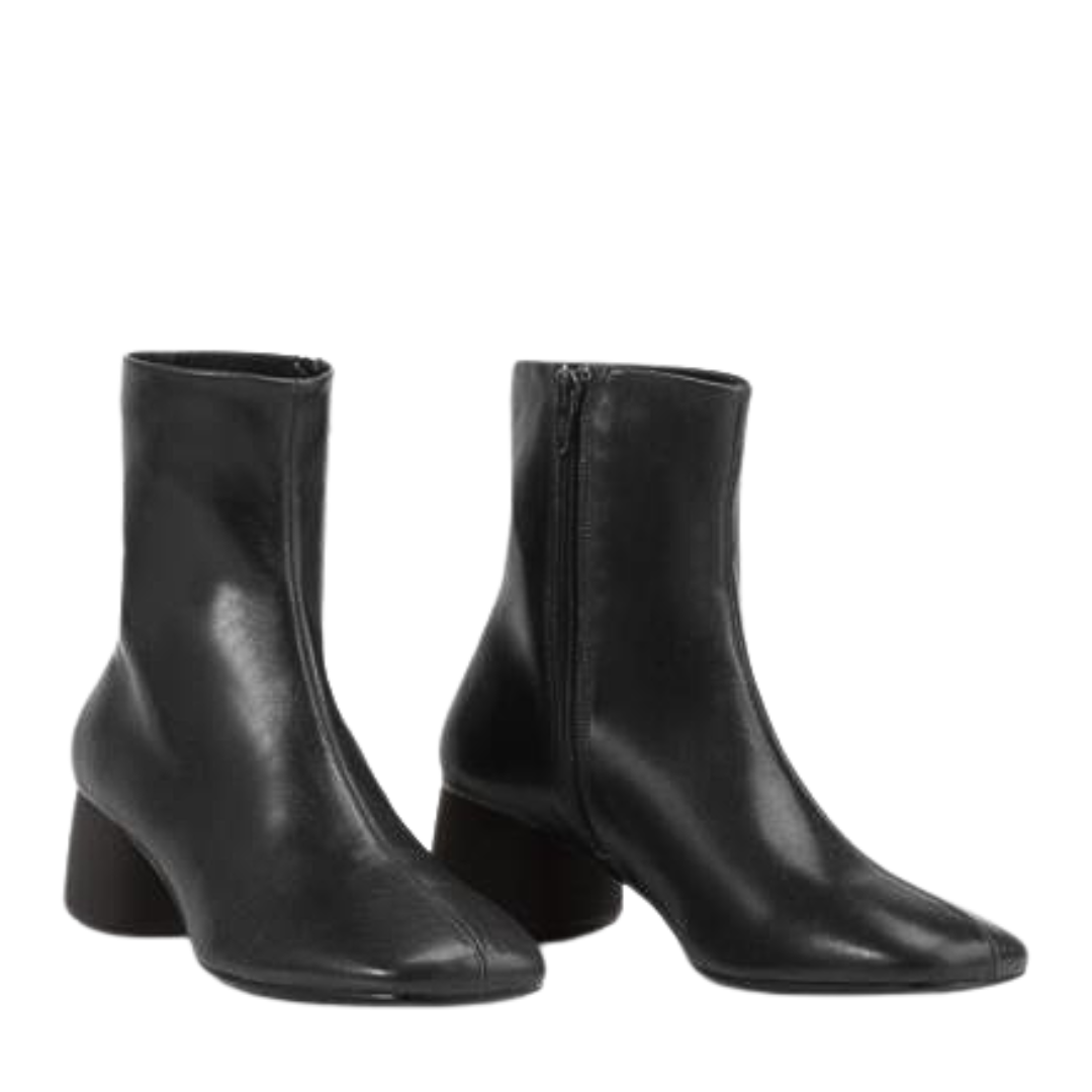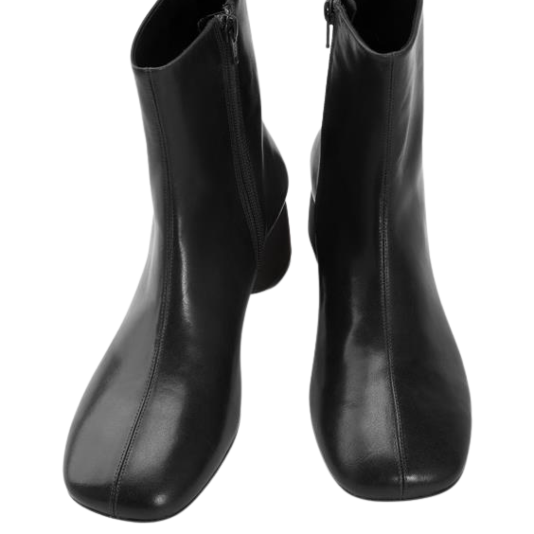 La Livia est une bottine raffinée qui apporte une touche subtile à vos tenues du quotidien. Réalisée en cuir noir lisse avec un bout délicatement arrondi, elle conjugue élégance et confort. Ses détails incluent une fermeture éclair latérale, une première de propreté en cuir sans chrome et un talon de 50 mm qui allonge la silhouette avec justesse.