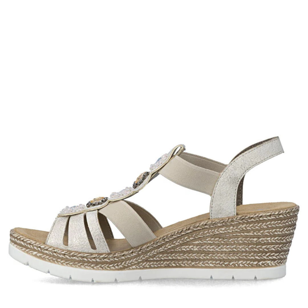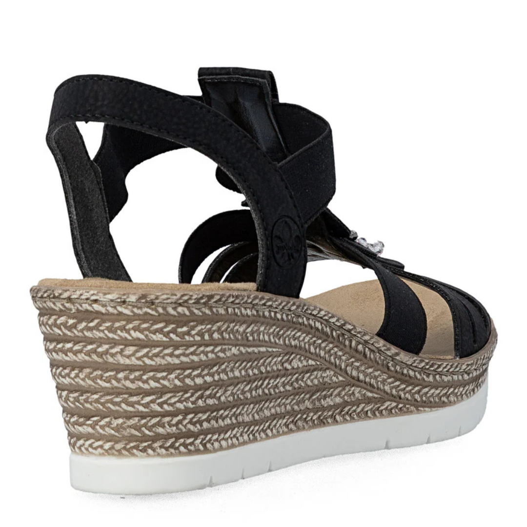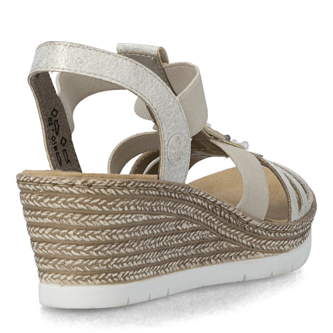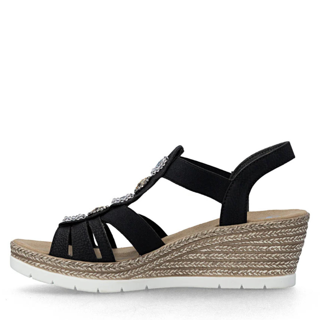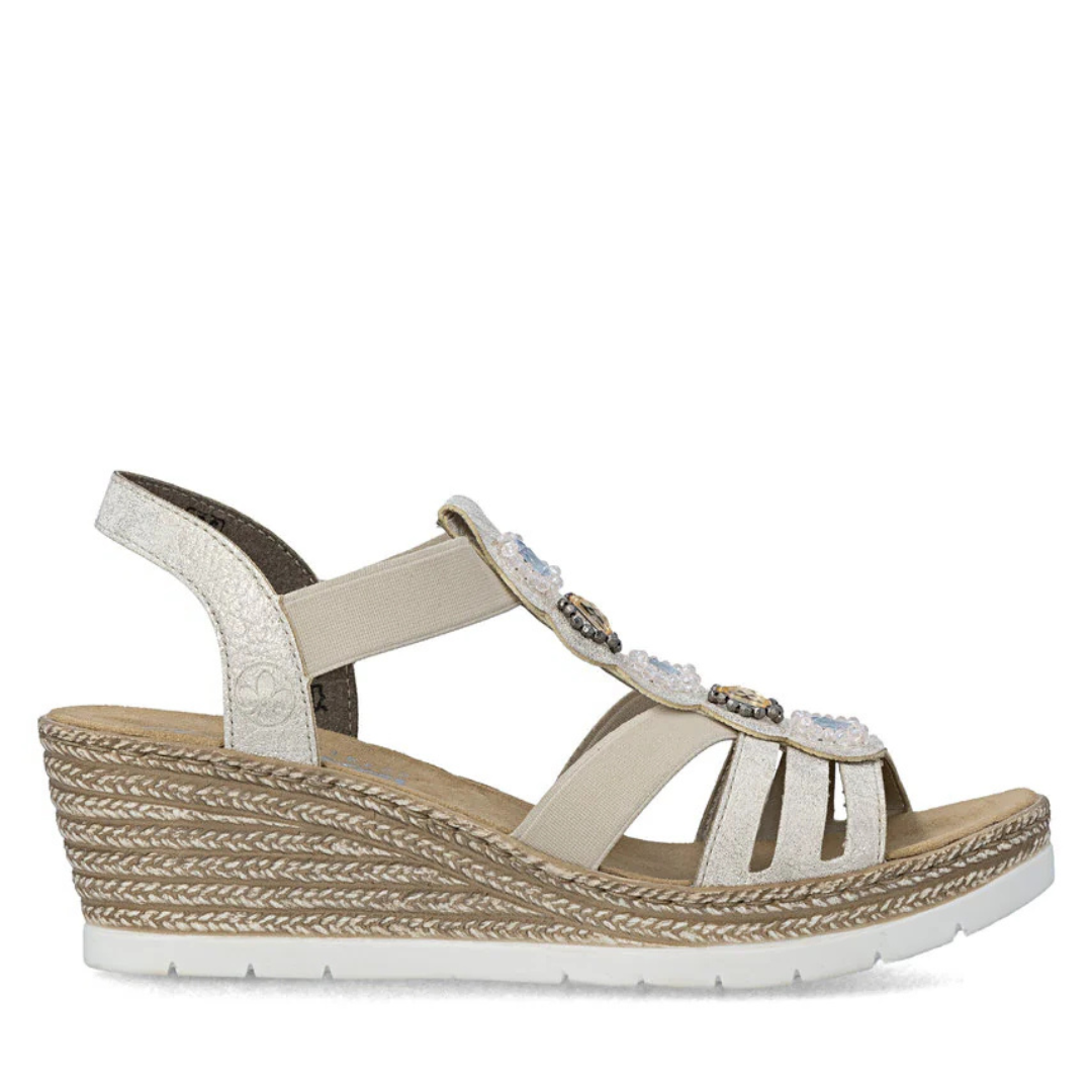 Cette sandale compensée Rieker allie parfaitement confort et style pour accompagner vos journées avec élégance. Sa conception soignée et ses détails décoratifs en font un modèle à la fois pratique et raffiné, idéal pour un usage quotidien.