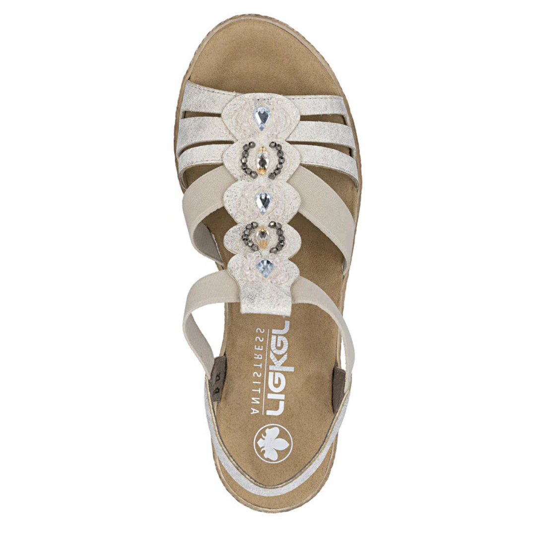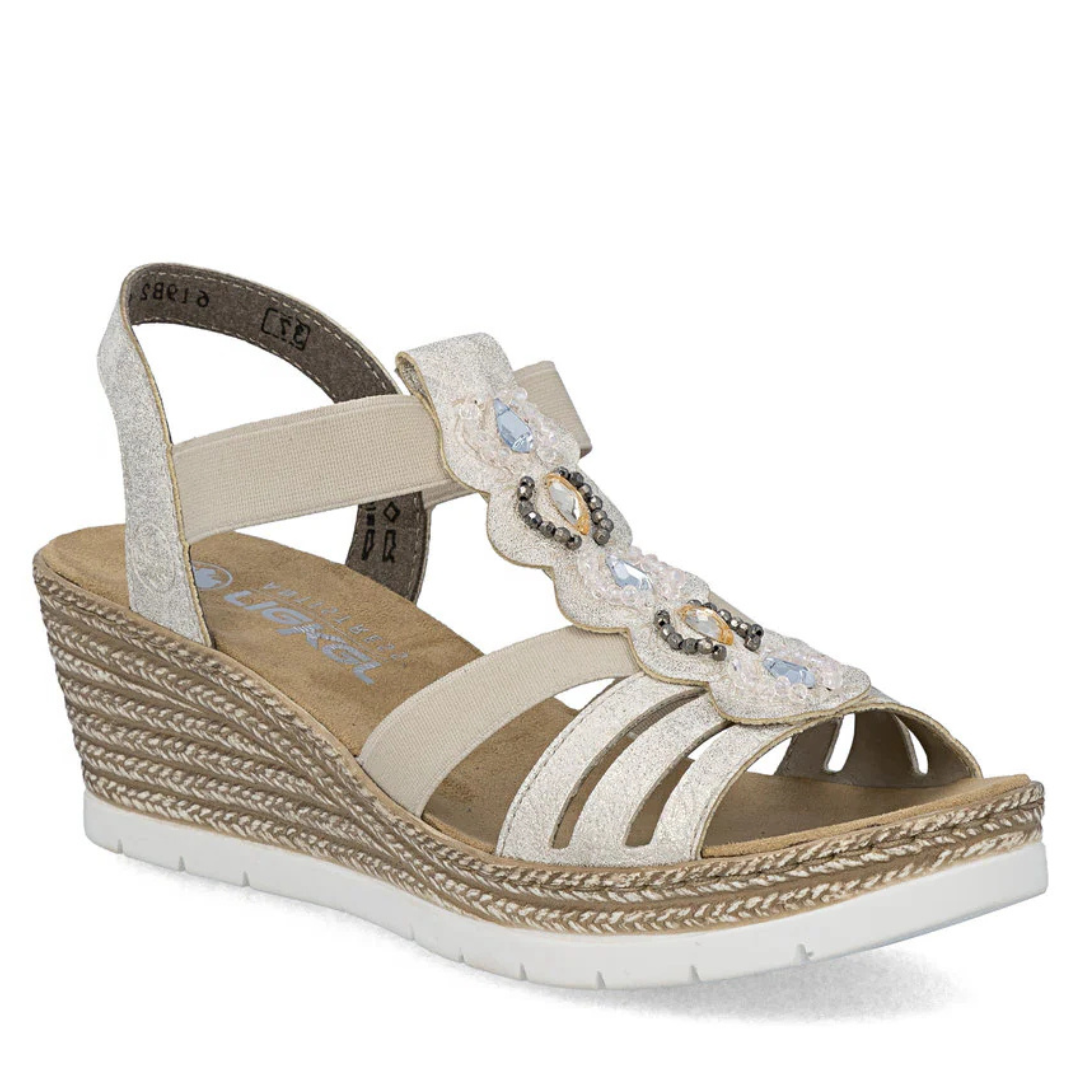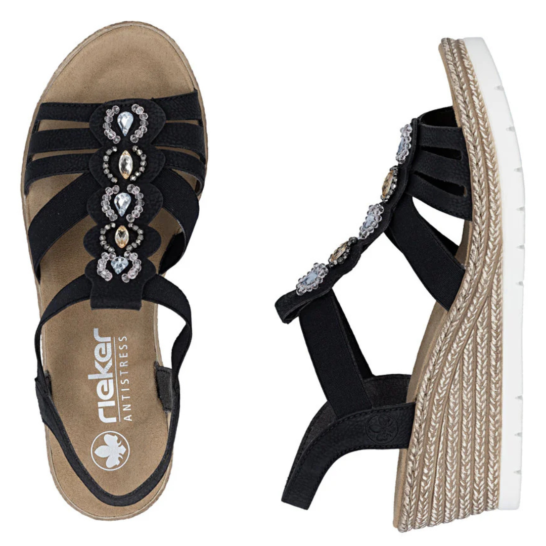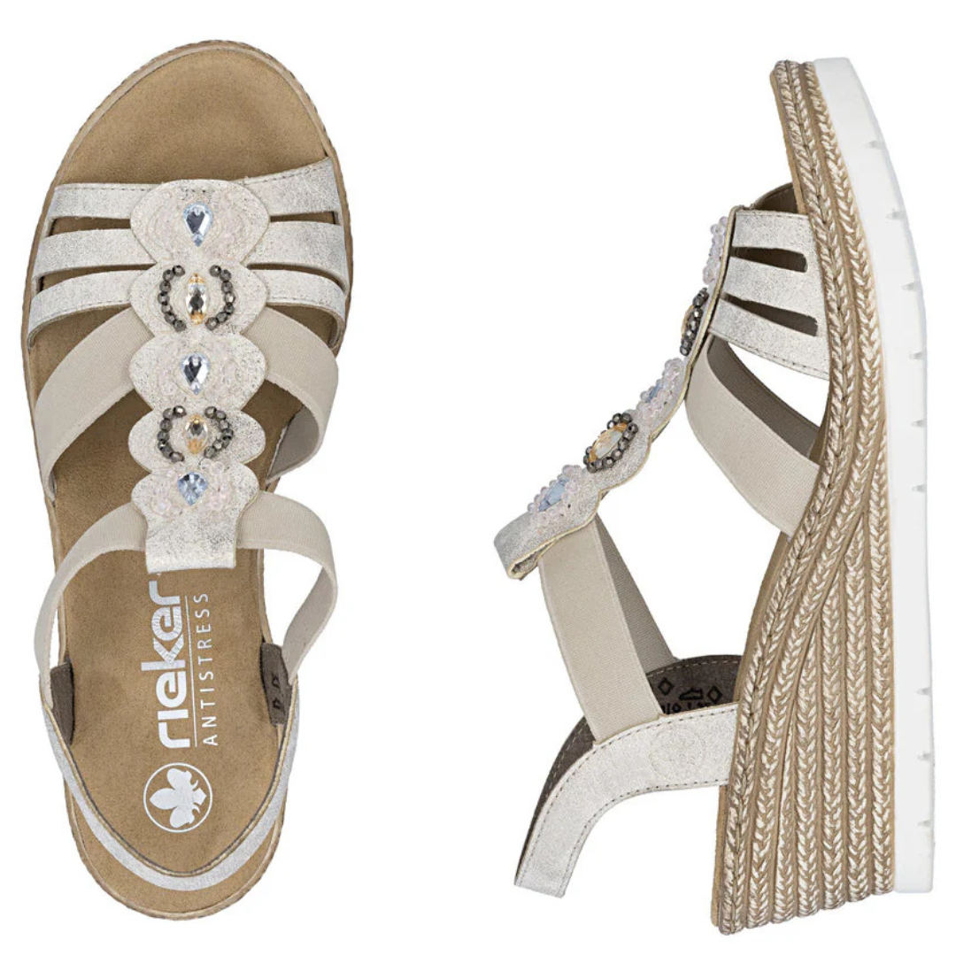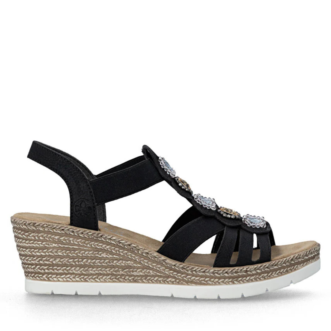 Cette sandale compensée Rieker allie parfaitement confort et style pour accompagner vos journées avec élégance. Sa conception soignée et ses détails décoratifs en font un modèle à la fois pratique et raffiné, idéal pour un usage quotidien.