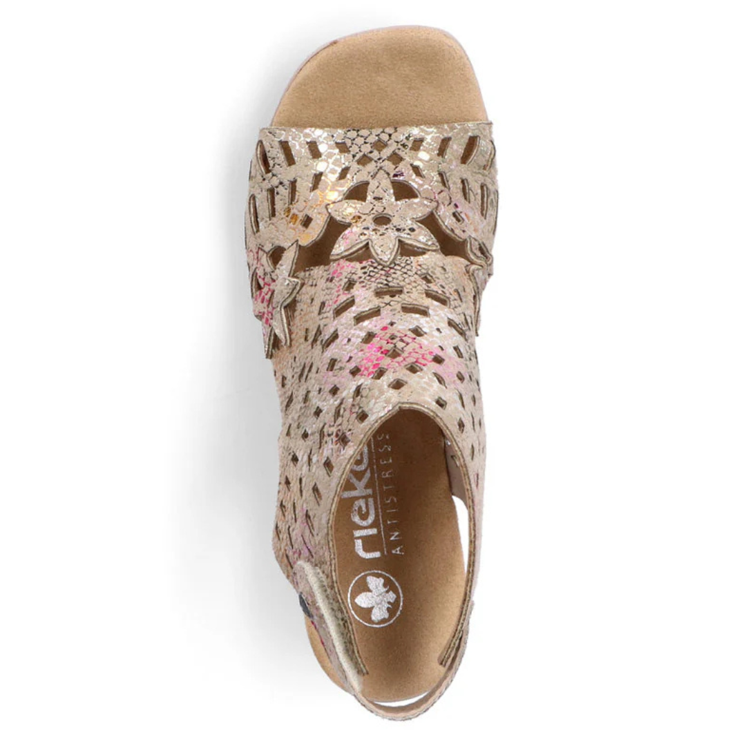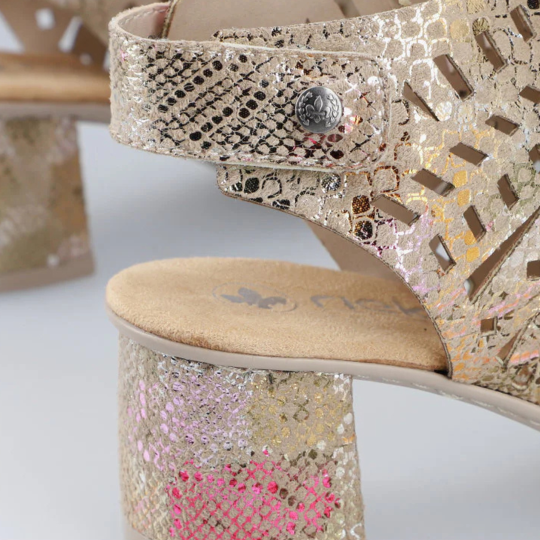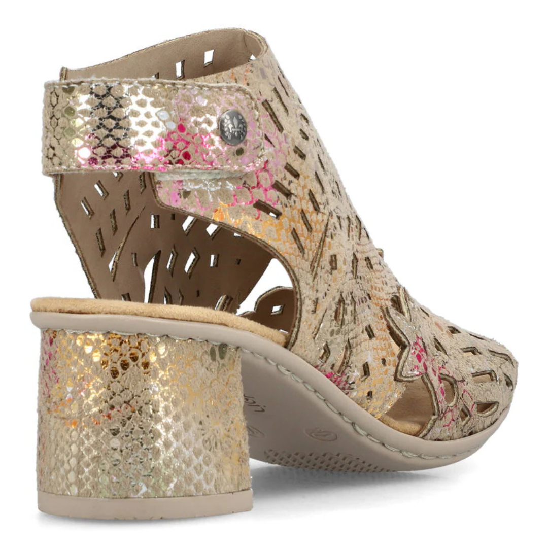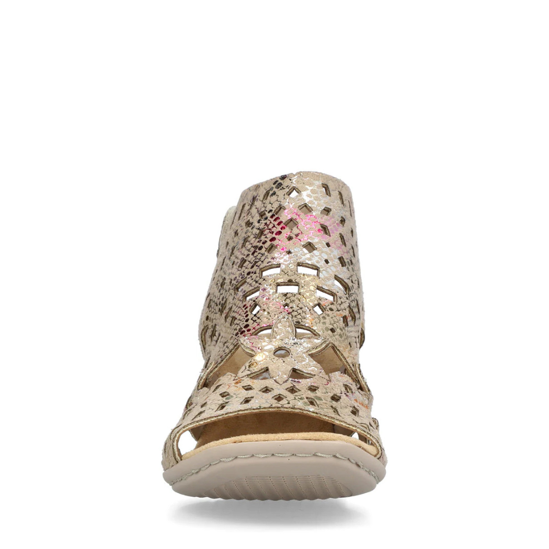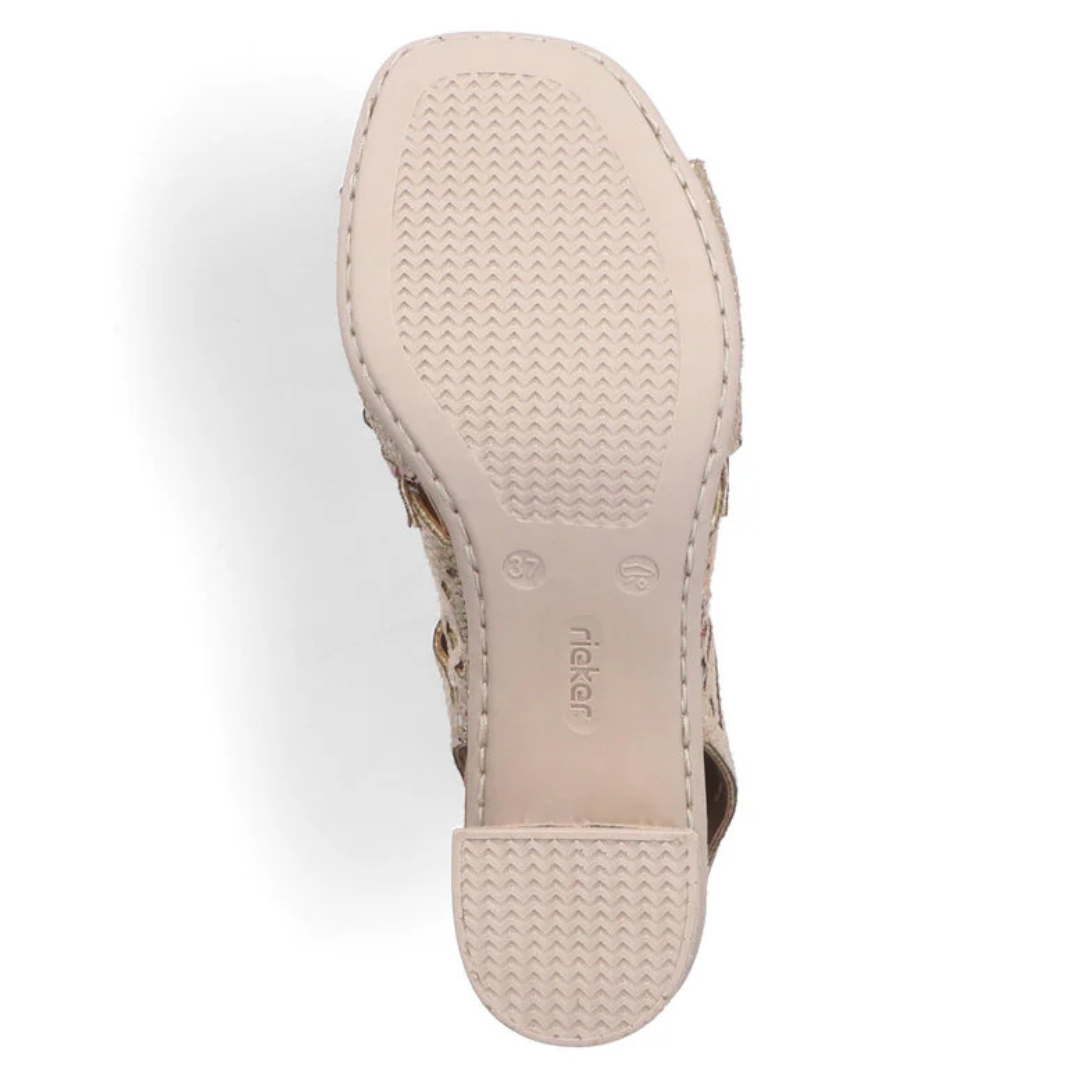 Cette sandale Rieker se démarque par son allure contemporaine et son confort exceptionnel. Conçue pour accompagner vos journées estivales, elle combine élégance et praticité avec une silhouette féminine facile à porter.