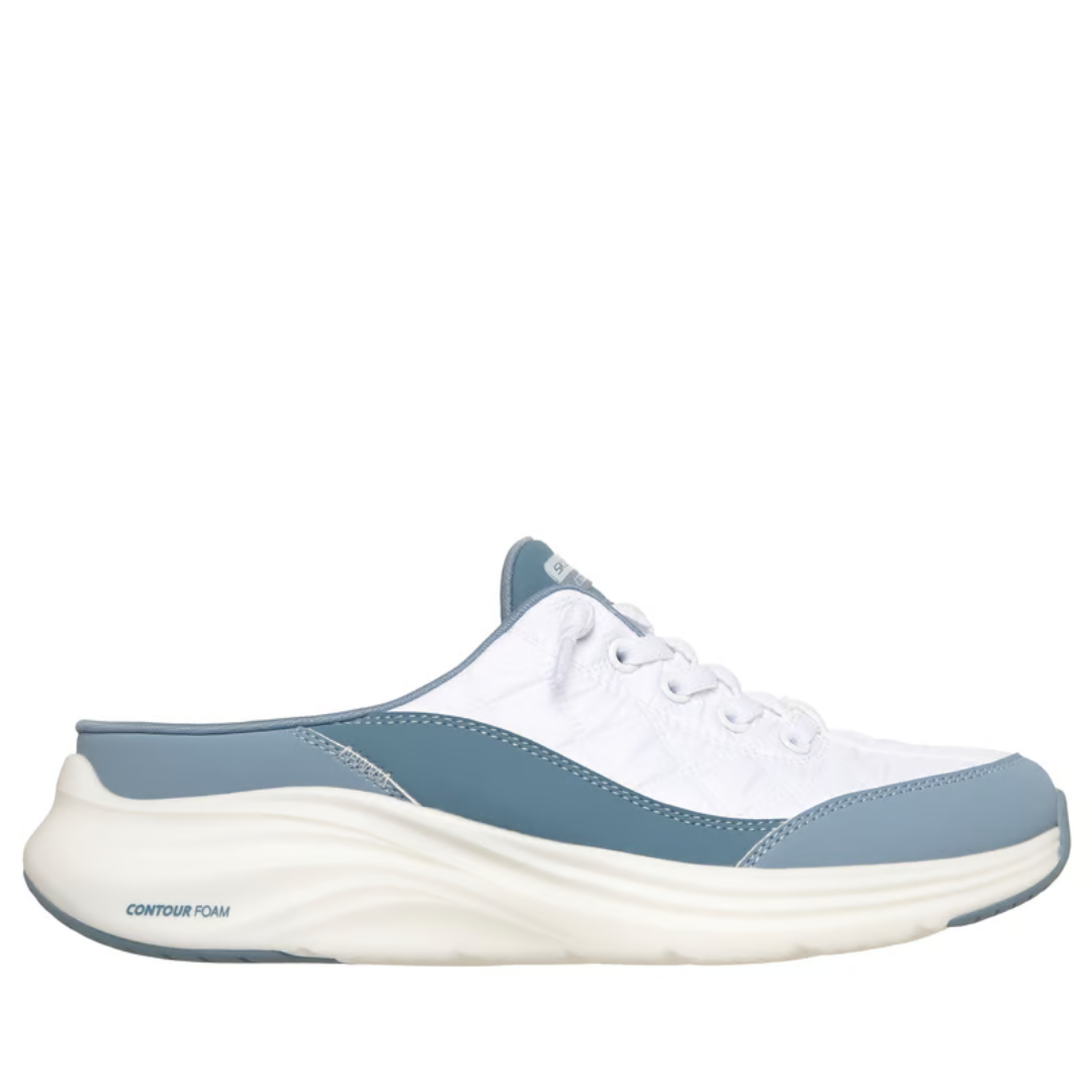 Glissez dans le style novateur et le confort optimal qui caractérisent la chaussure Skechers Contour Foam™ - Cozy Fit™ Sweet Embrace. Cette chaussure de sport respirante à dos ouvert, de style mule, comprend une empeigne en cuir durable et en maille matelassée et aérée, des lacets extensibles noués, une semelle intercalaire Contour Foam™ coussinée et notre semelle intérieure emblématique Skechers Air-Cooled Memory Foam®.