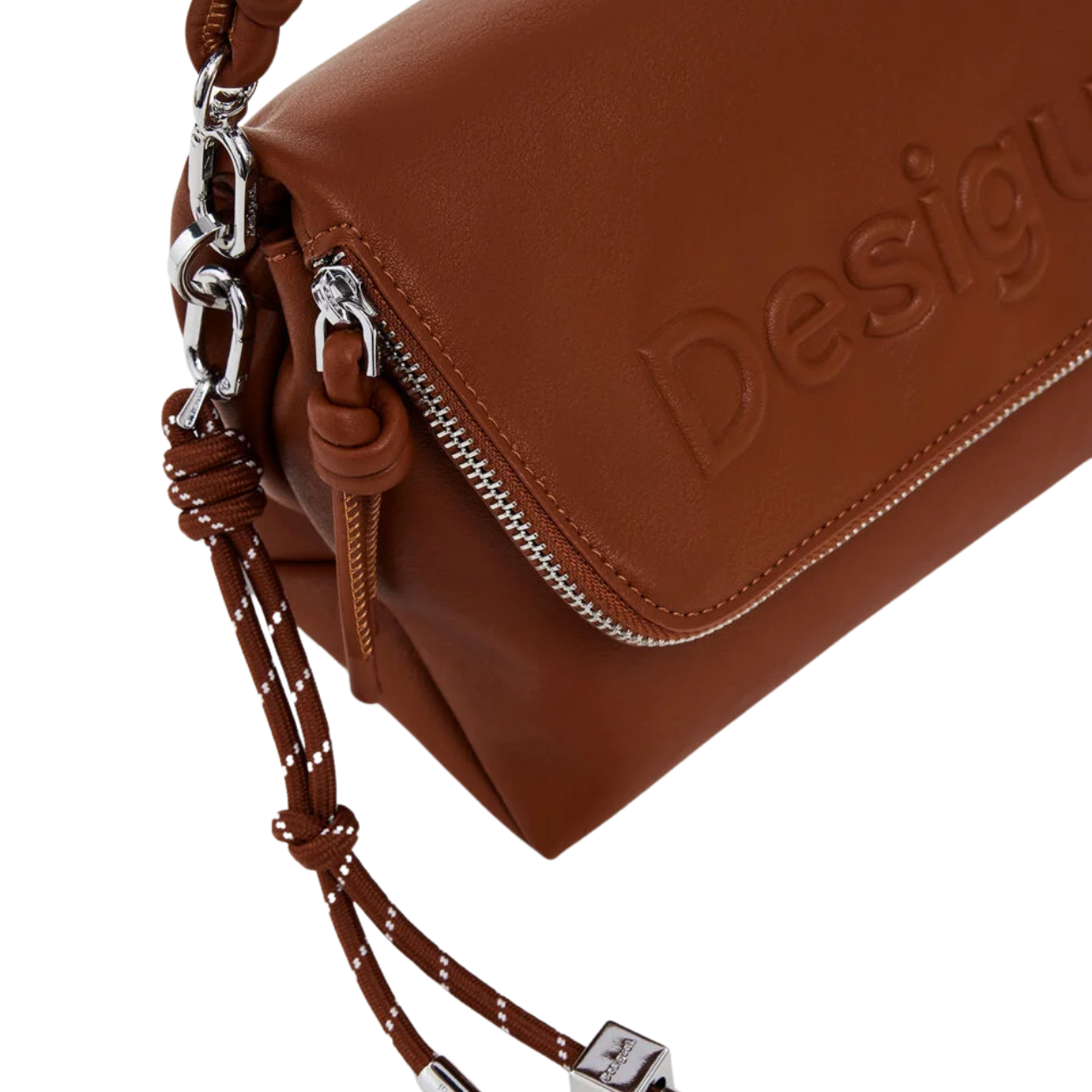 Ce sac à main Desigual présente une silhouette moderne et compacte, parfaite pour un usage quotidien. Sa couleur camel riche et sa matière en polyuréthane lui confèrent une allure sophistiquée et intemporelle. Il peut être porté aussi bien à l'épaule qu'en bandoulière, offrant une grande polyvalence.