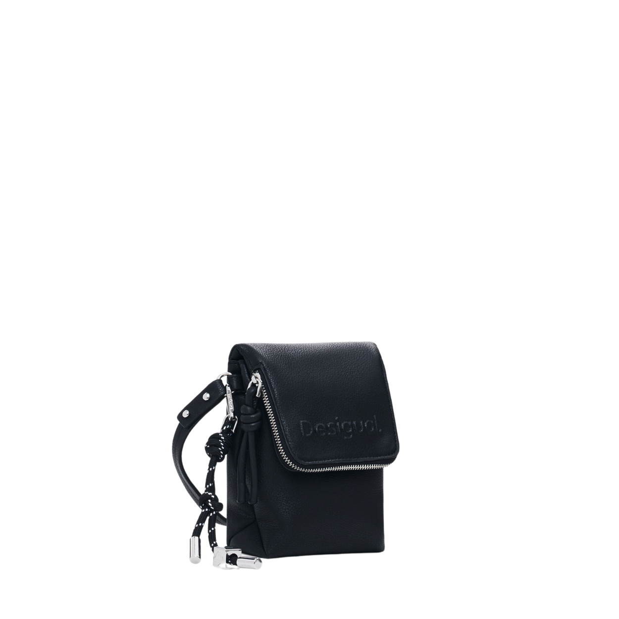 Ce petit porte-téléphone Desigual, à la fois moderne et pratique, est l’accessoire parfait pour garder vos essentiels à portée de main avec style. Son design noir élégant et sa texture effet cuir lui confèrent un look sobre et raffiné.