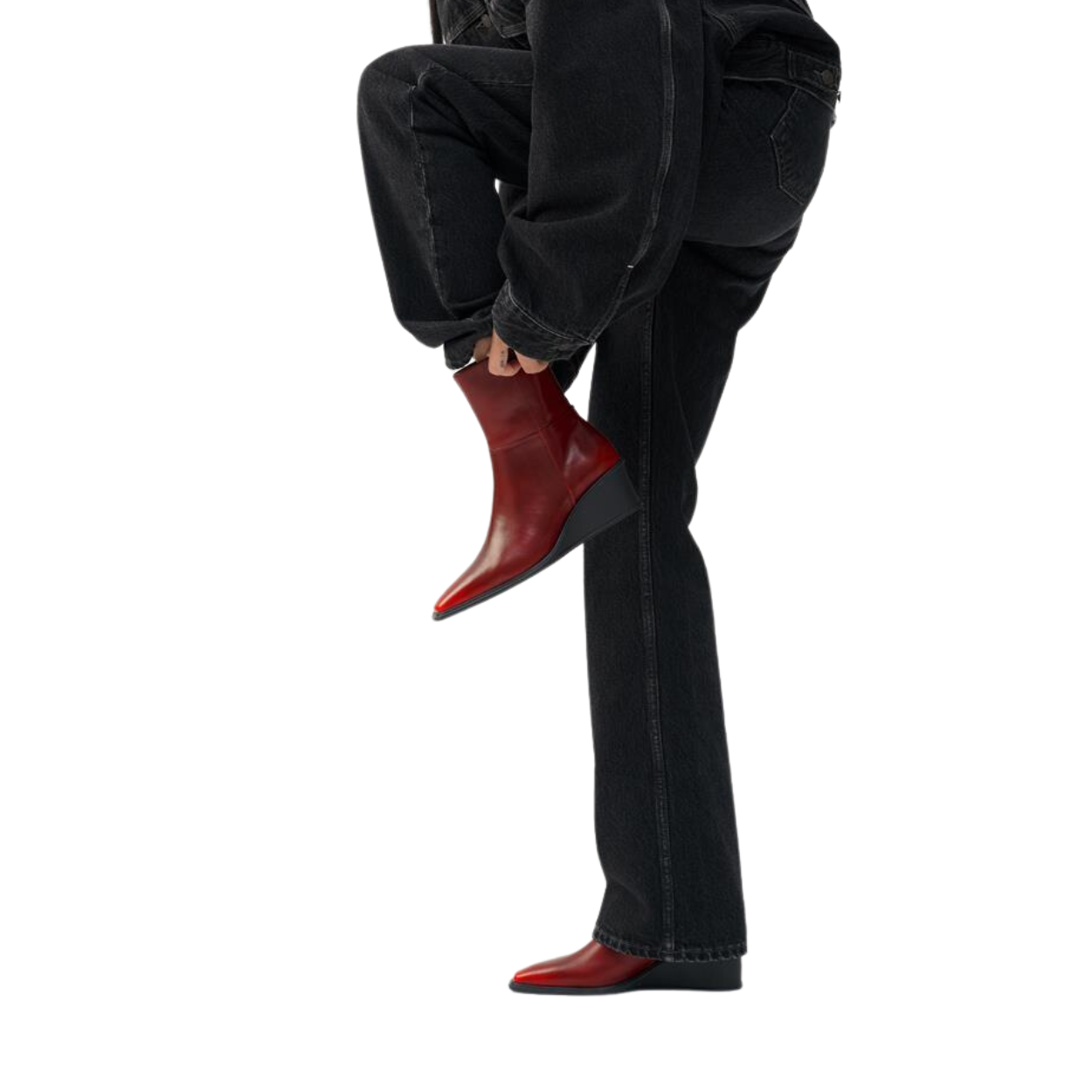 Aino, ce sont les bottines contemporaines à porter au quotidien. Le modèle est confectionné en cuir noir avec une forme pointue et une fermeture zippée sur le côté. Les talons compensés élégants mesurent 50 mm.