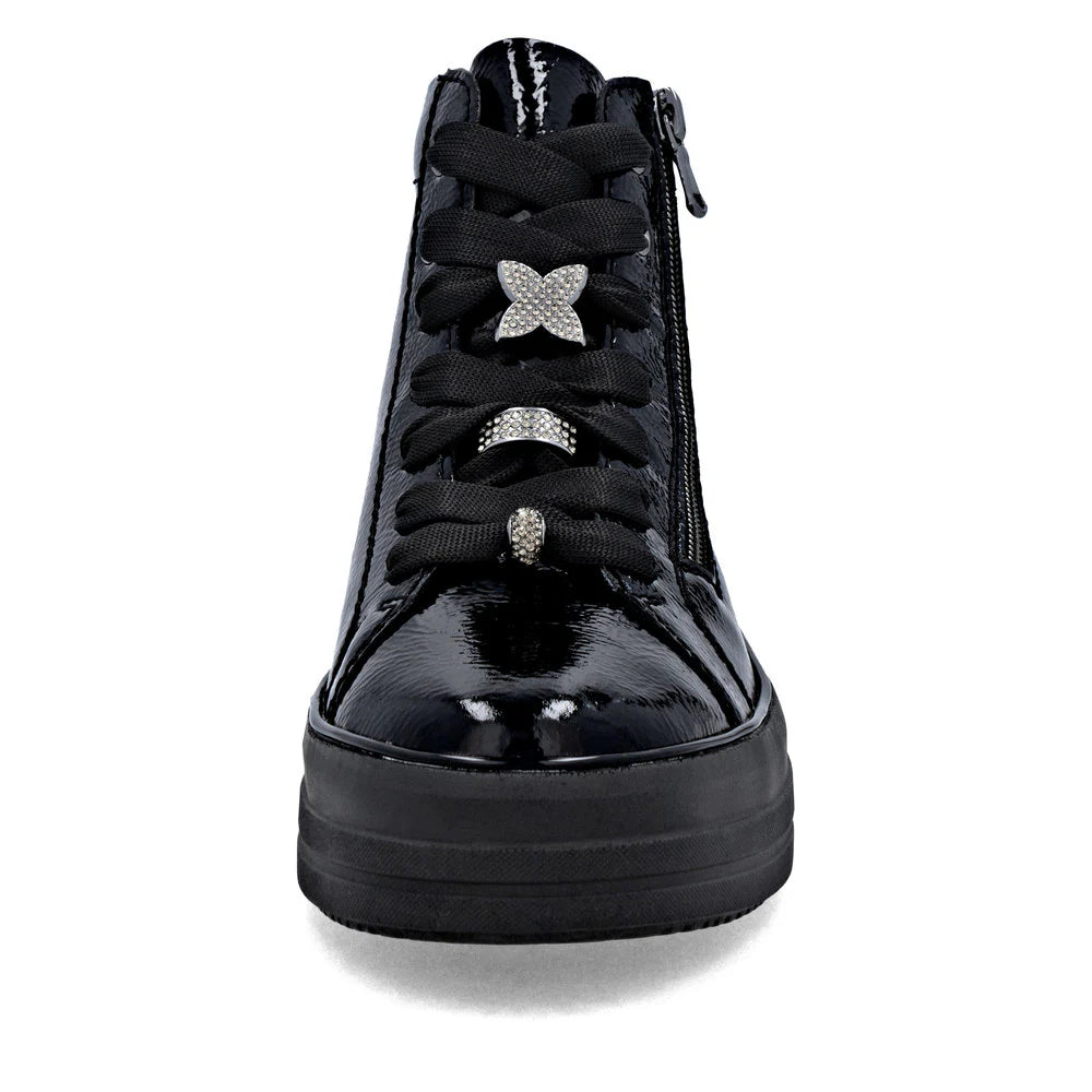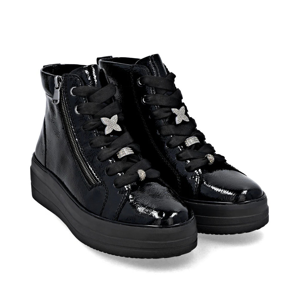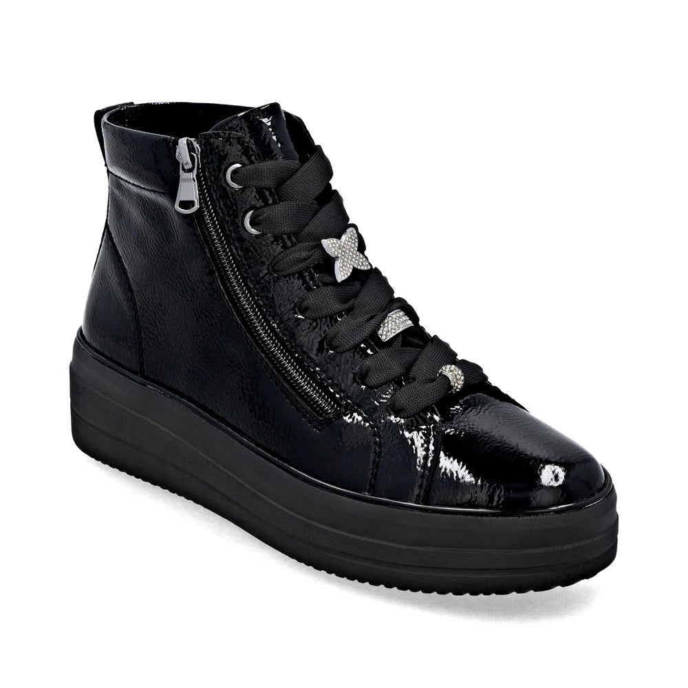Le modèle D1C72 séduit par son mélange parfait entre élégance urbaine et confort absolu. Conçue pour les femmes actives qui recherchent à la fois du style et du bien-être au quotidien, cette bottine en cuir verni ajoute une touche moderne à toutes vos tenues. Grâce à son laçage ajustable et sa fermeture éclair intérieure, elle s’enfile facilement et s’adapte parfaitement à votre pied. Idéale pour l’automne et l’hiver, sa semelle légère offre une bonne adhérence et un amorti agréable, même lors de longues journées de marche.