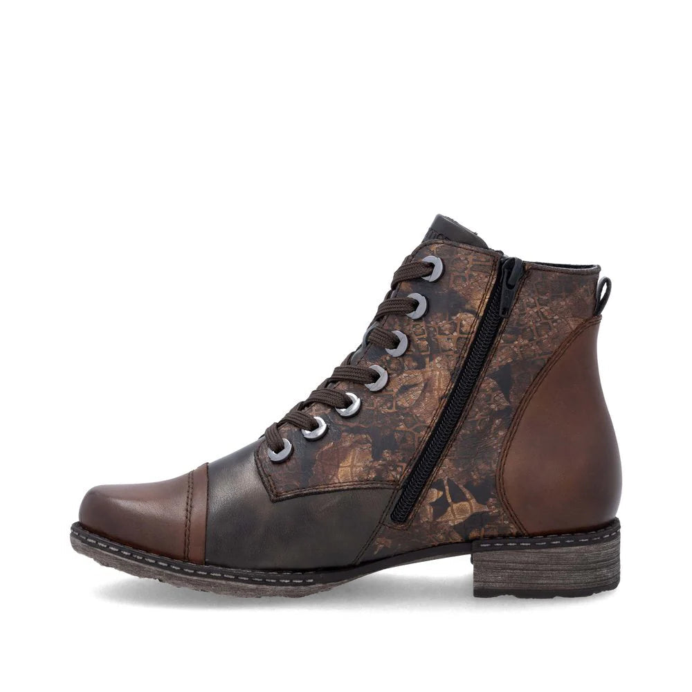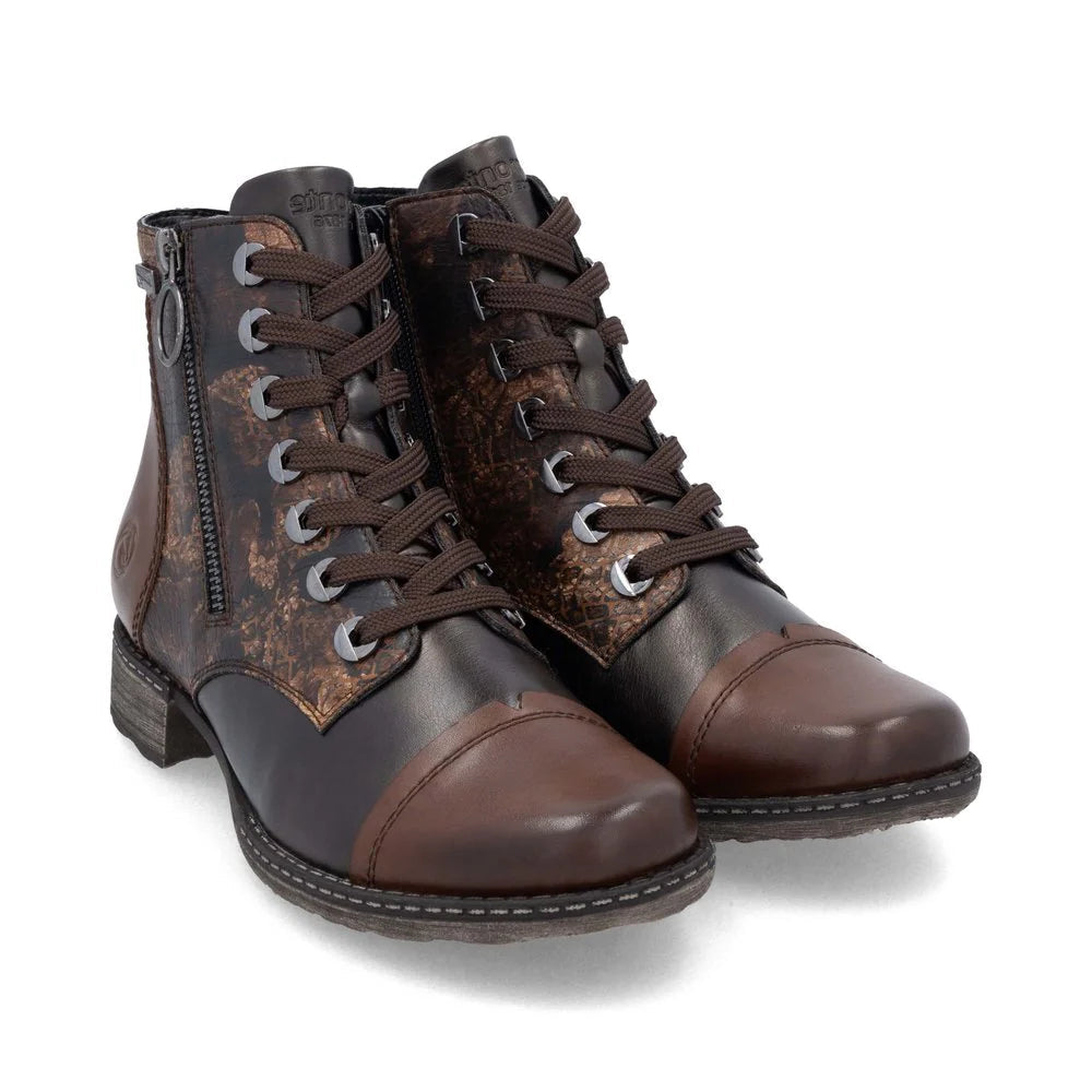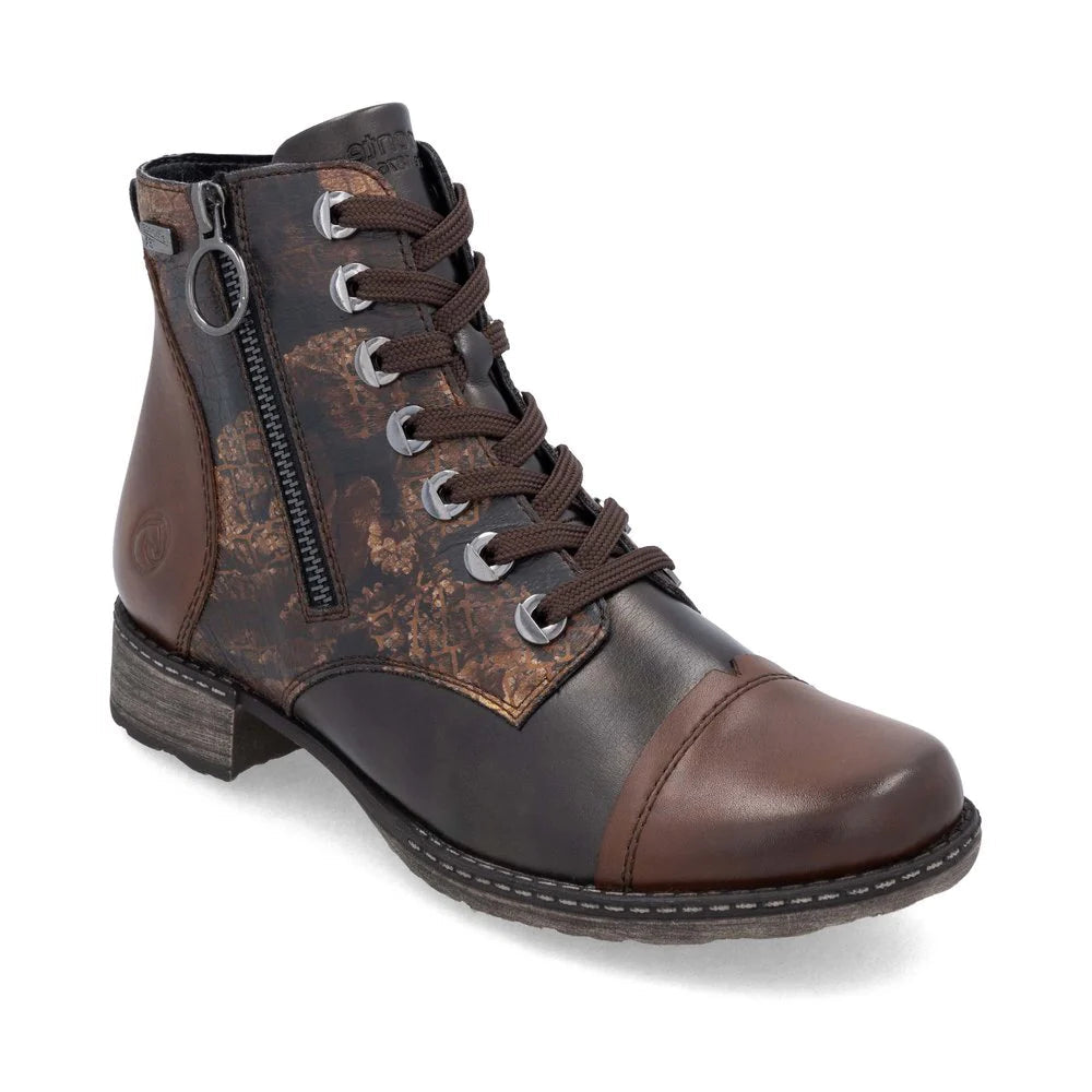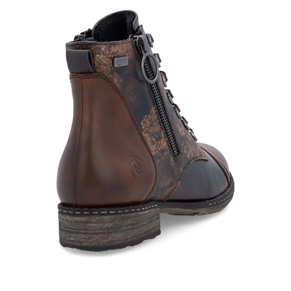 Le plein de style ! Ces bottines noires à lacets Remonte ont tout pour plaire. Le laçage s'harmonise avec la fermeture éclair pour plus de fonctionnalité et de confort. La semelle intérieure amovible et la semelle résistante à l'usure et adhérente sont des atouts supplémentaires. Ce modèle est coupé en largeur confort. Grâce à la technologie remonteTEX, la chaussure est déperlante et protège du vent. Ainsi, flâner sans souci n'est plus un problème !