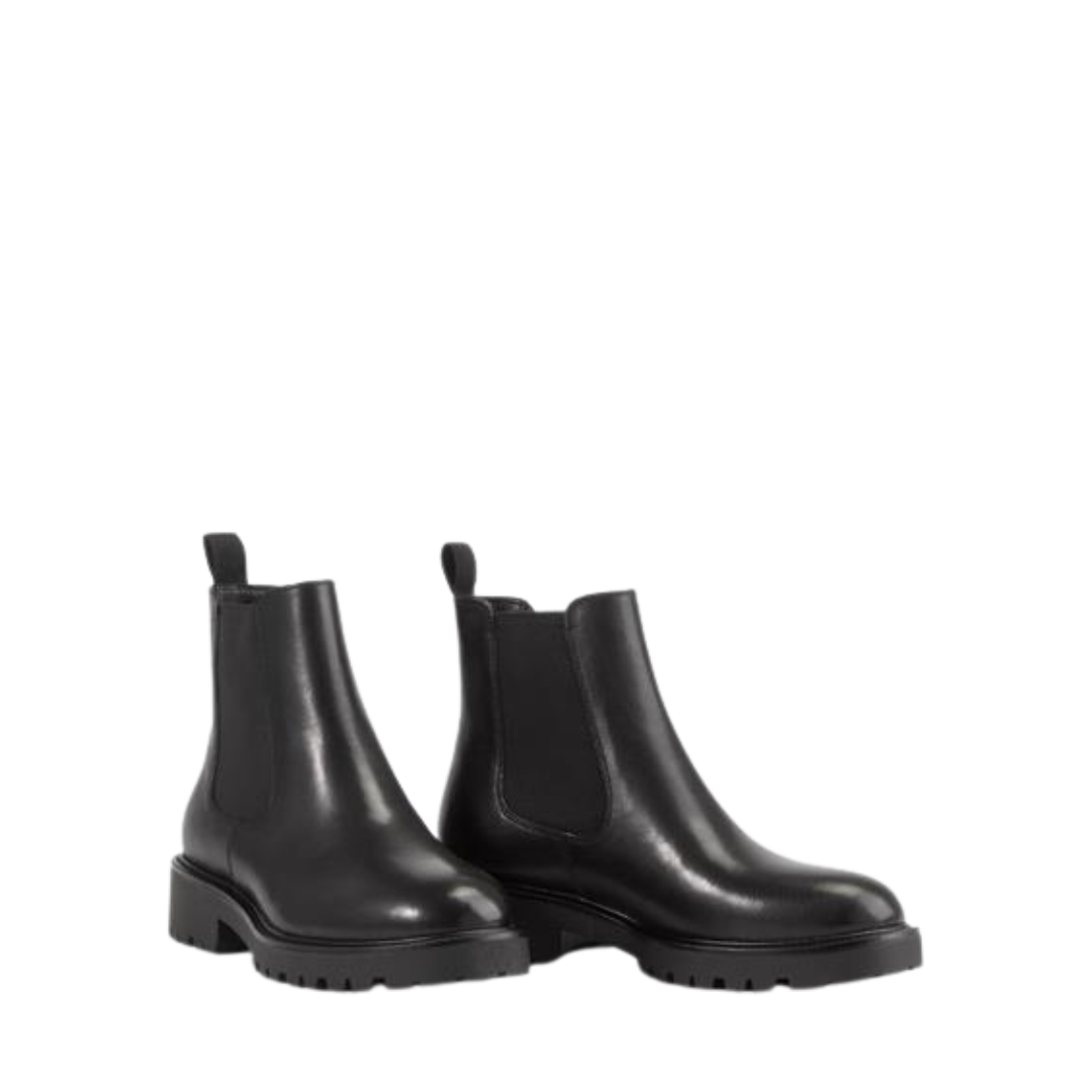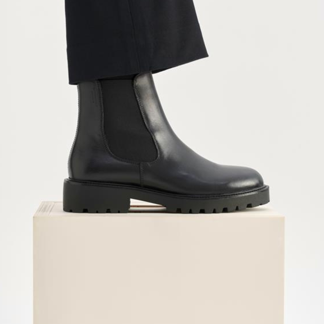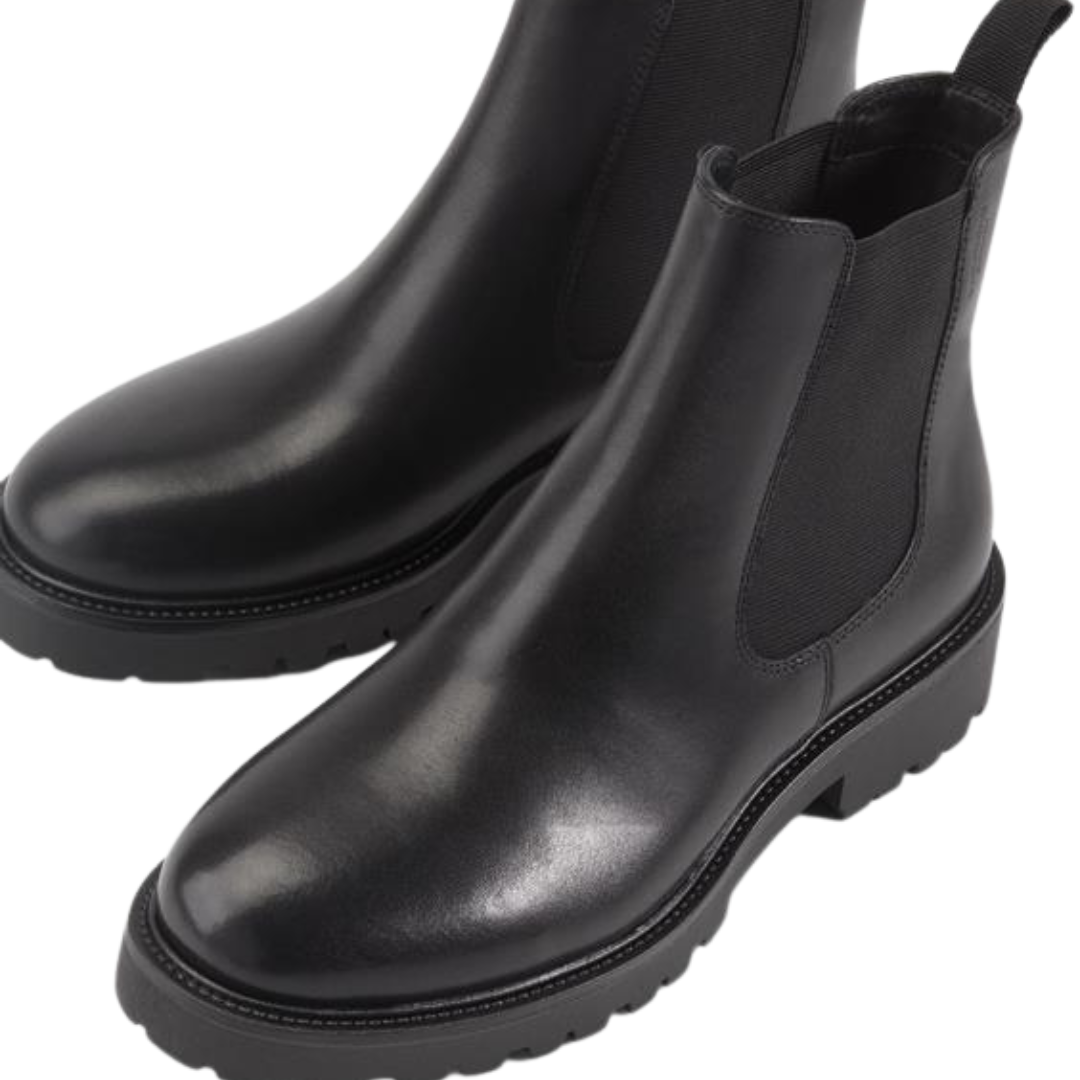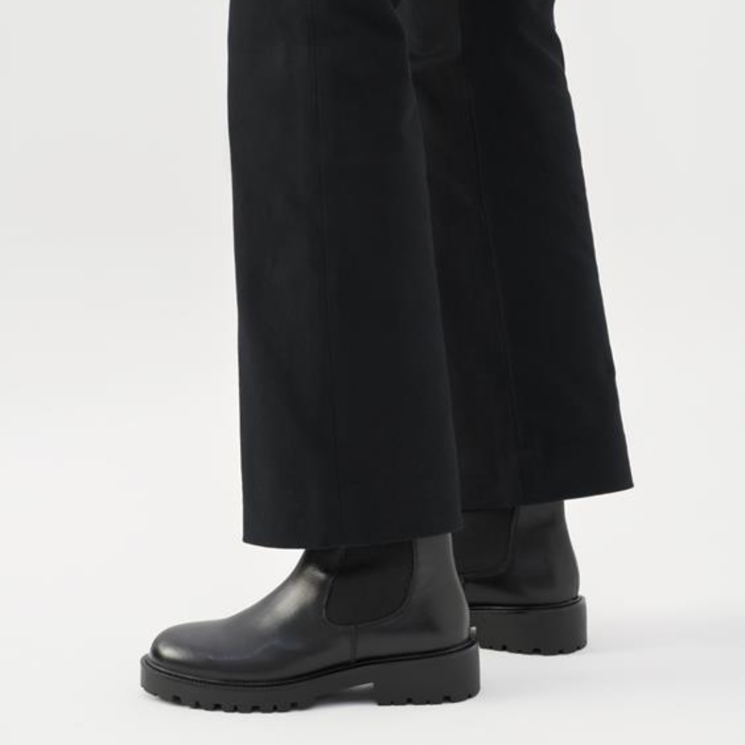 Un modèle intemporel qui traverse les saisons. La botte Kenova est confectionnée en cuir noir et se distingue par sa languette arrière, son panneau latéral élastiqué, sa semelle crantée et sa première de propreté en cuir.
