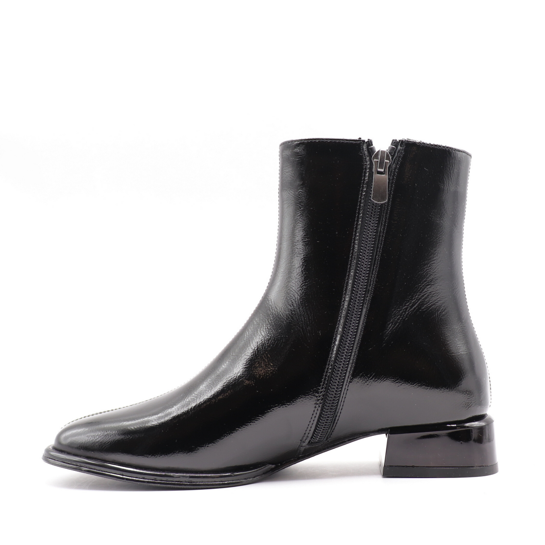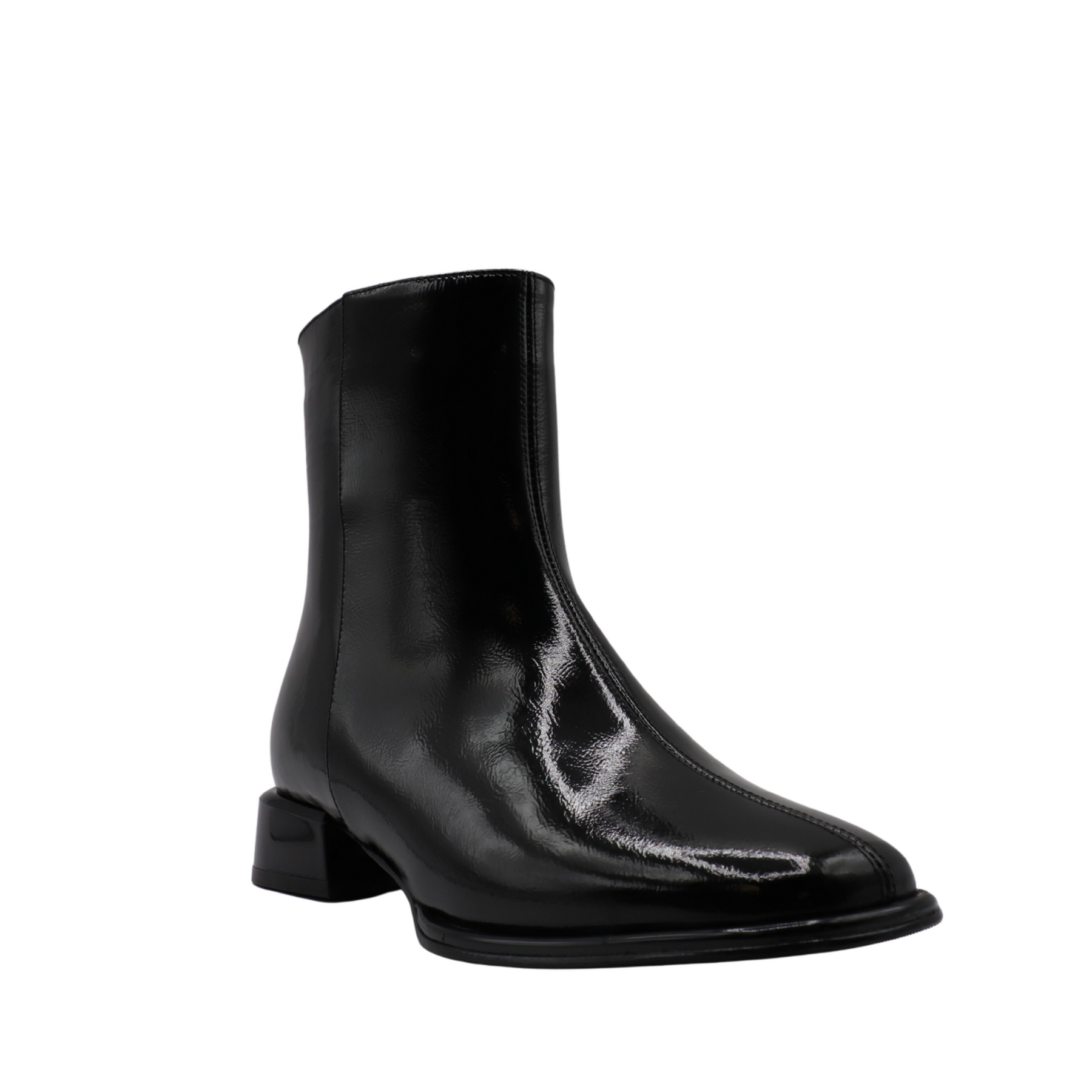 Les bottines Lova de Apropo incarnent l’élégance moderne avec leur cuir verni brillant et leur silhouette minimaliste. Leur bout légèrement pointu et leur talon carré bas apportent une touche chic et contemporaine, idéale pour sublimer vos looks quotidiens ou vos tenues habillées. Une fermeture éclair discrète facilite l’enfilage tout en maintenant une allure raffinée.