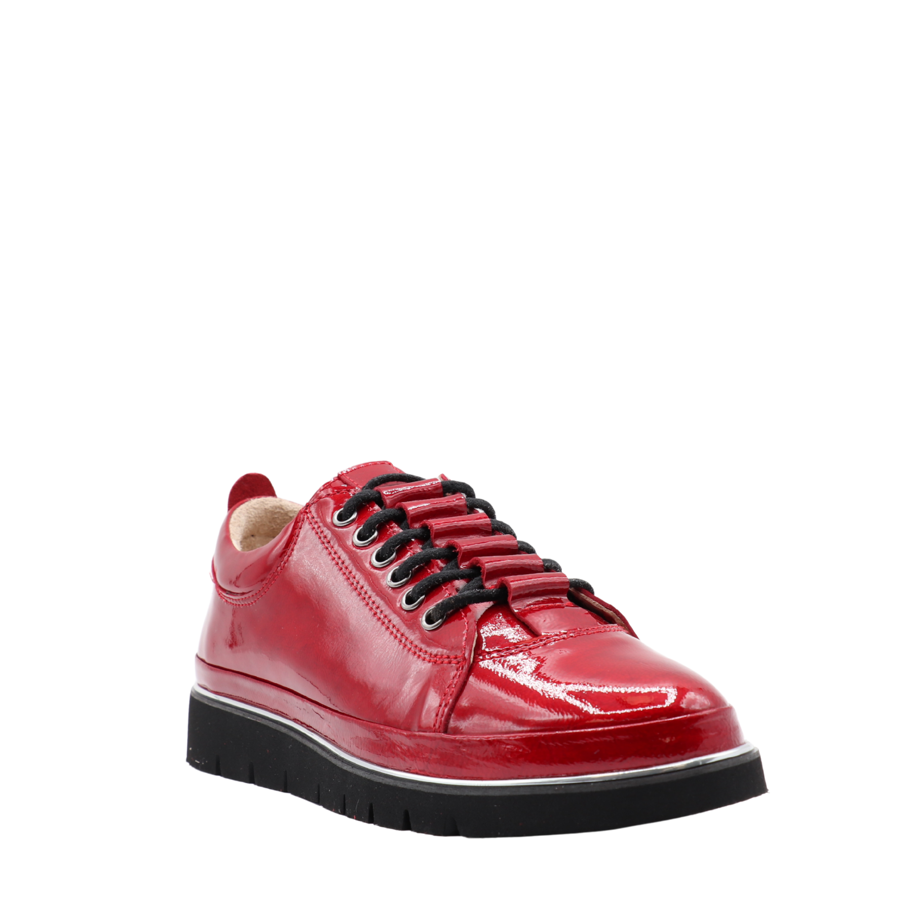 Alliez audace et confort avec Maude, le sneaker en cuir verni signé Apropo. Disponible en bleu profond et en rouge éclatant, ce modèle revisite la chaussure sportive classique avec une touche de brillance et de sophistication. Sa semelle épaisse et souple assure un confort durable, tandis que ses œillets métalliques et son fini verni lui confèrent une allure moderne et urbaine.