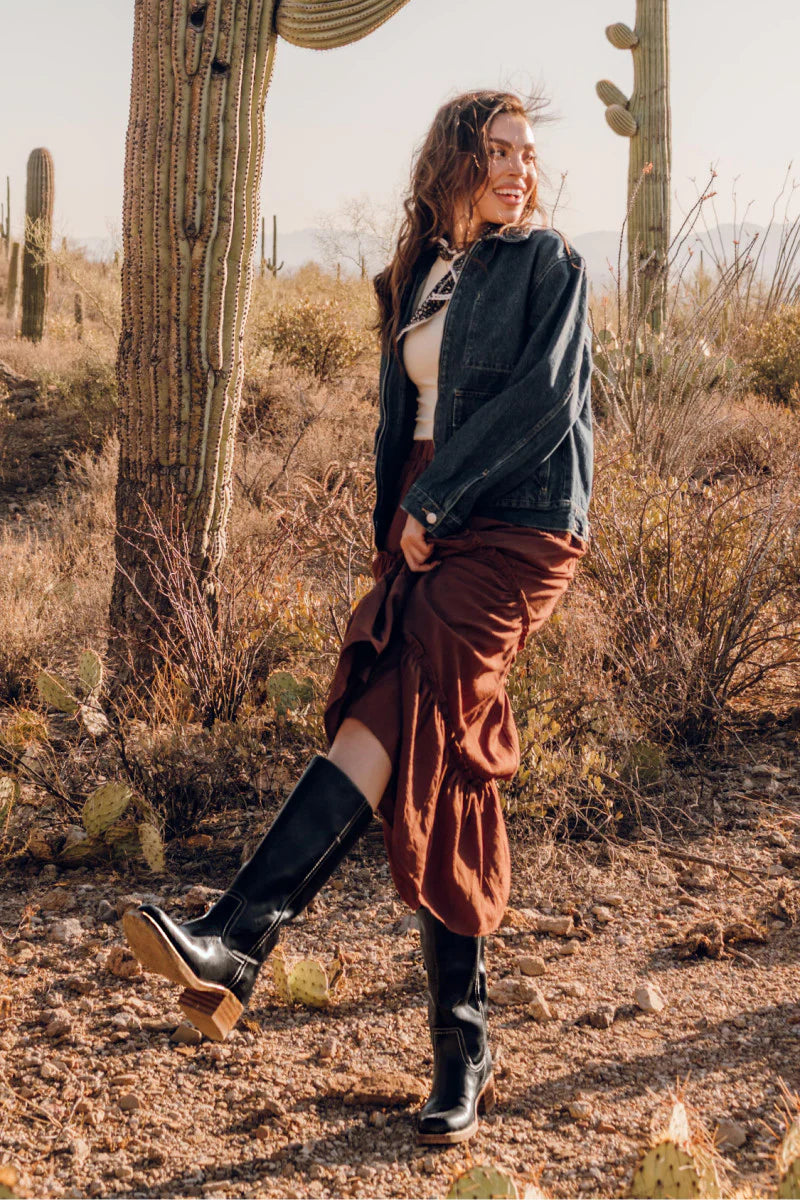 L'icône Miranda 14 : la botte dont vous ne pourrez plus vous passer. Inspirée de nos modèles les plus emblématiques, la botte haute Miranda 14 est conçue pour devenir l'élément central de votre garde-robe. Fabriquée à partir de matériaux de première qualité, elle se distingue par son talon bloc stable et son confort exceptionnel dès le premier essai. Que vous la portiez avec un jean à jambe large ou une robe midi de style bohème, elle apporte une touche de style décontracté et raffiné à toutes vos tenues.