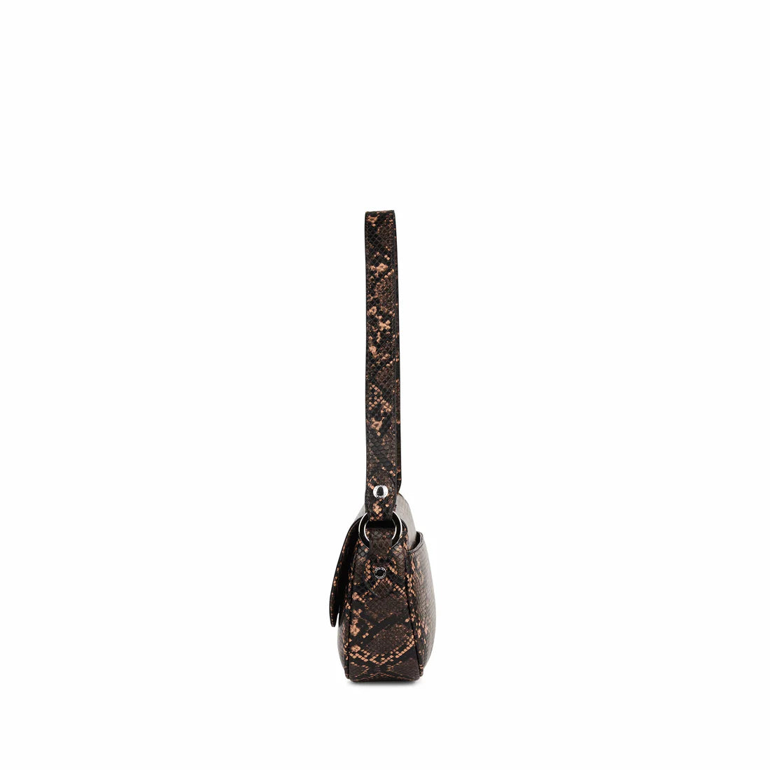 À l'épaule (avec la ganse en cuir vegan incluse)