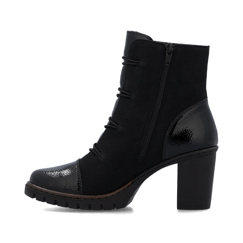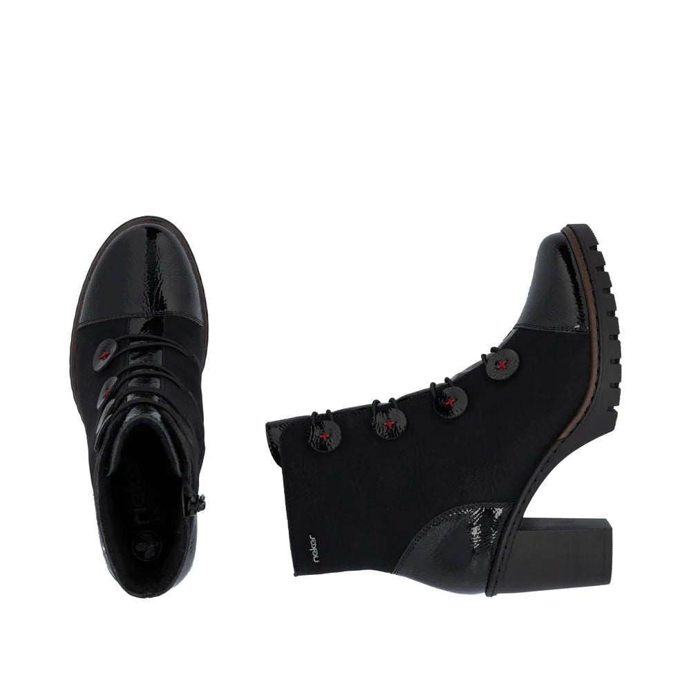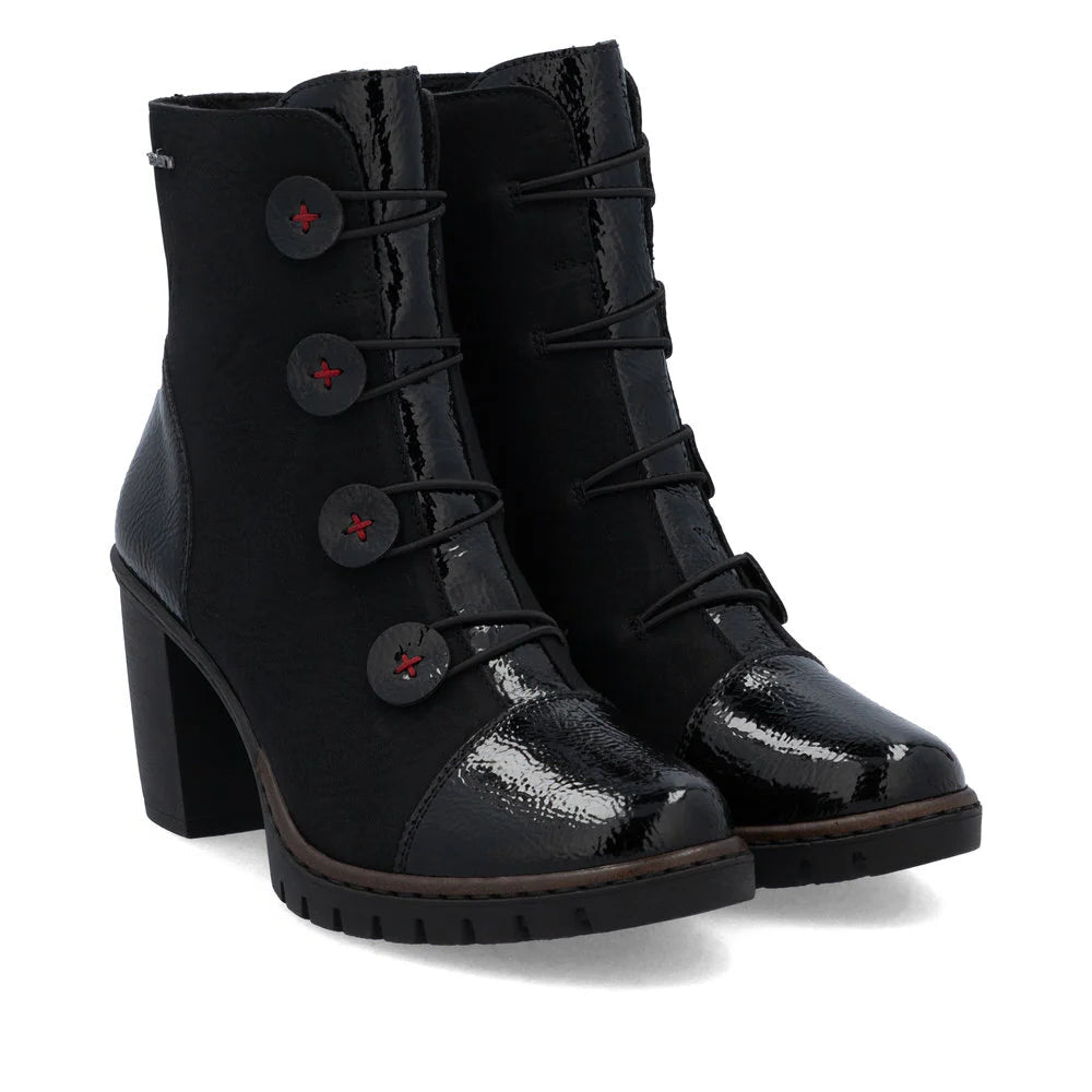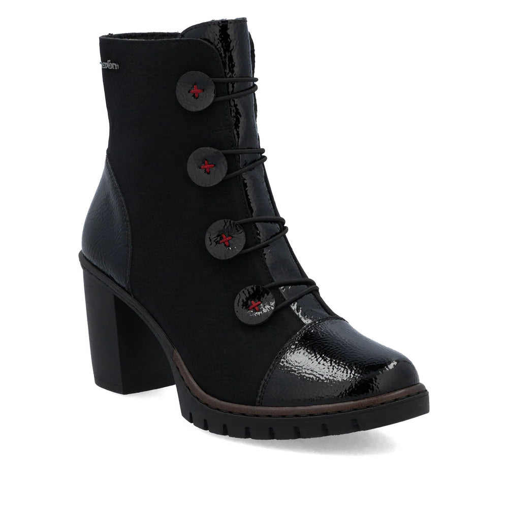 Sur le radar de la mode ! Ces bottines Rieker noires vous promettent une sensation divine. Leur construction cousue les rend particulièrement robustes et flexibles. Une fermeture éclair permet un enfilage rapide et facile. La semelle légère et amortissante à talon bloc assure une marche agréable, même en cas de port prolongé. Attention, chaussures potentiellement préférées !